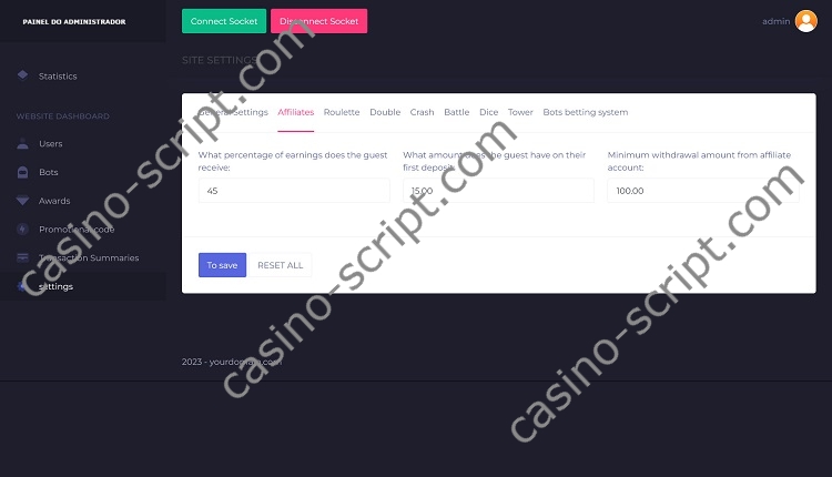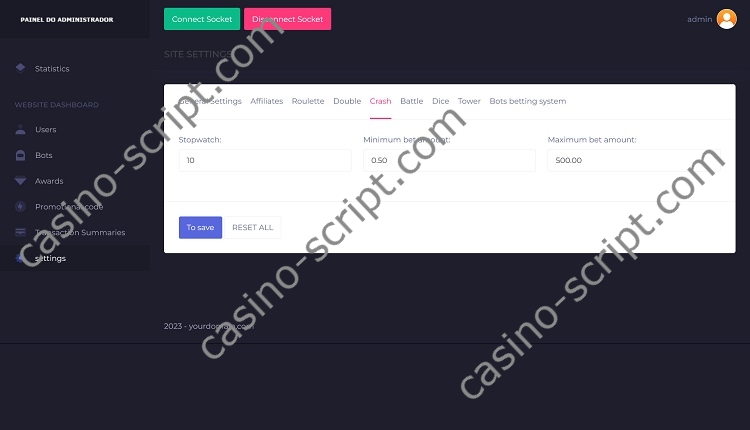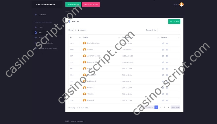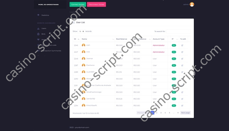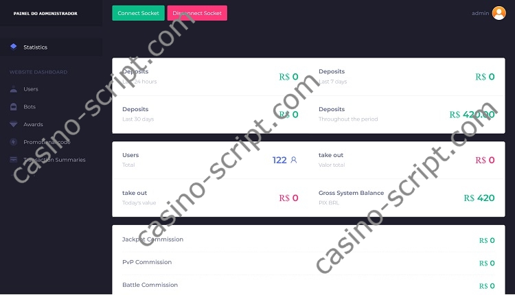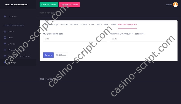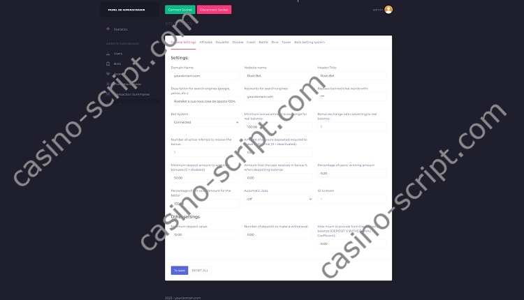 From the administration panel you are able to manage game settings, players, limitations and you can also create bot users to make the site more “alive” with real (fake) users in action.