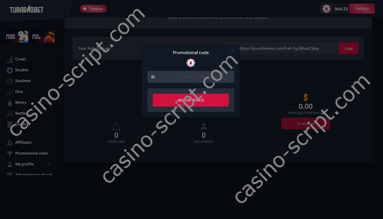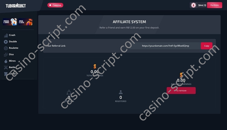 Invite players to earn money with the built in affiliate refferal system where your players can earn money by invite new active players for your